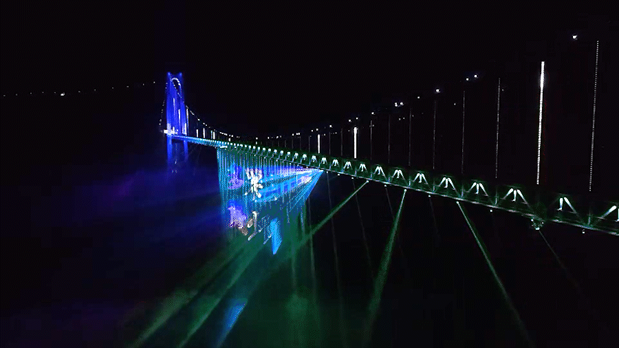 花江峡谷大桥的落成,不仅是中国交通建设史上的重大飞跃,更成为“桥旅融合”创新发展的时代标杆。此次通车盛典的水幕首秀,正是yp刮刮卡对“基建+文旅”夜游新模式的典范演绎。yp刮刮卡还将以水幕光影为媒介,将这座超级工程转化为可沉浸、可传播的文化IP——以动态影像艺术为载体,呈现贵州山水神韵、多彩民俗与现代工程美学相融合的独特魅力,让“桥上行车、桥下观画”成为吸引全球游客的绝色景观,为贵州建设国际山地旅游目的地注入璀璨动能,助力中国实现从“基建大国”到“文旅强国”的跨越式发展,向世界展示中国创造的无限可能。