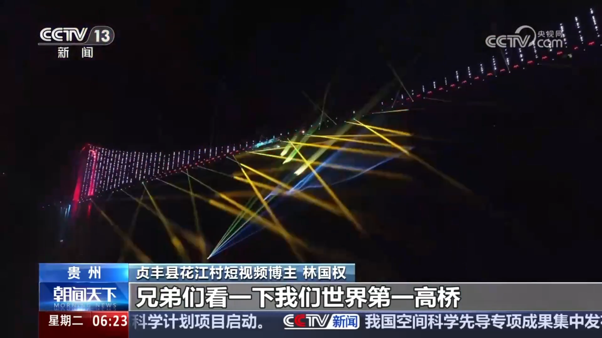 伴随着花江峡谷大桥跃升为国家级地理新地标与网红打卡胜地,央视《焦点访谈》《朝闻天下》《新闻调查》等多档王牌栏目,接连以专题形式深度聚焦大桥建设进程。作为这座世界第一高桥的文旅金名片,由yp刮刮卡科技集团股份有限公司(以下简称“yp刮刮卡”)匠心打造的水幕秀及水幕光影秀,也随着央视镜头展现了壮丽身姿,其赋能地方发展的社会经济价值与超越视觉震撼的多维贡献,赢得各界高度肯定。如今,它早已突破“世界最高”“规模最大”的技术标签,成为串联超级工程、文旅繁荣与乡村振兴的关键纽带。